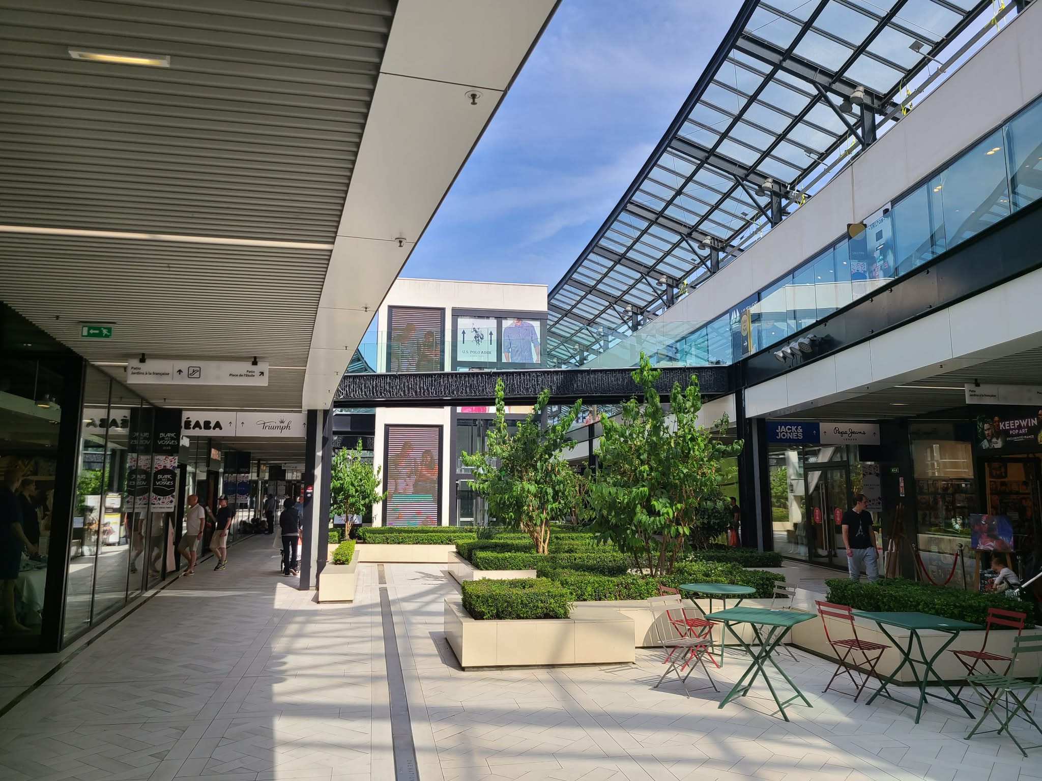 Avec plus de 90 boutiques et plusieurs centaines de marques représentées, le centre propose une offre variée couvrant la mode, les accessoires, le sport, la beauté ou encore l’équipement de la maison. Les visiteurs peuvent y retrouver des enseignes internationales et françaises telles que Sandro, The Kooples, Levi’s ou encore Zadig & Voltaire.