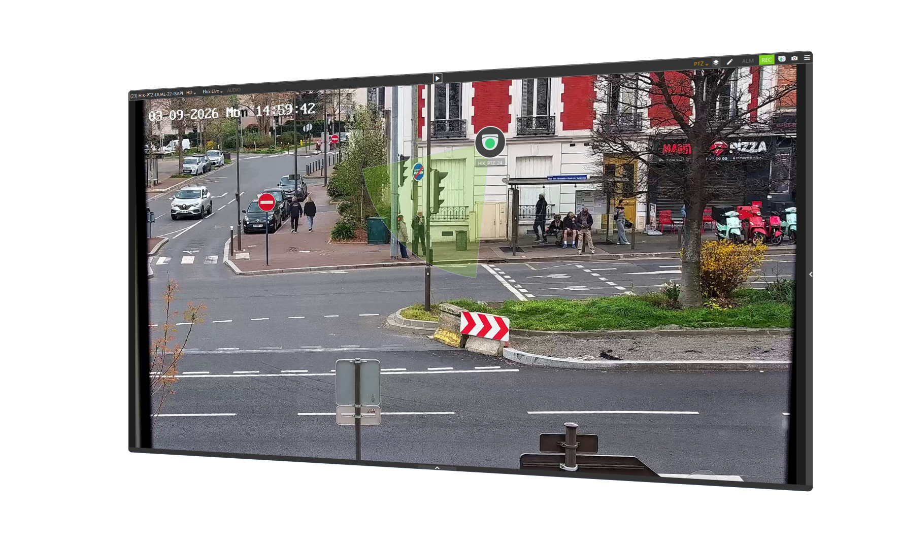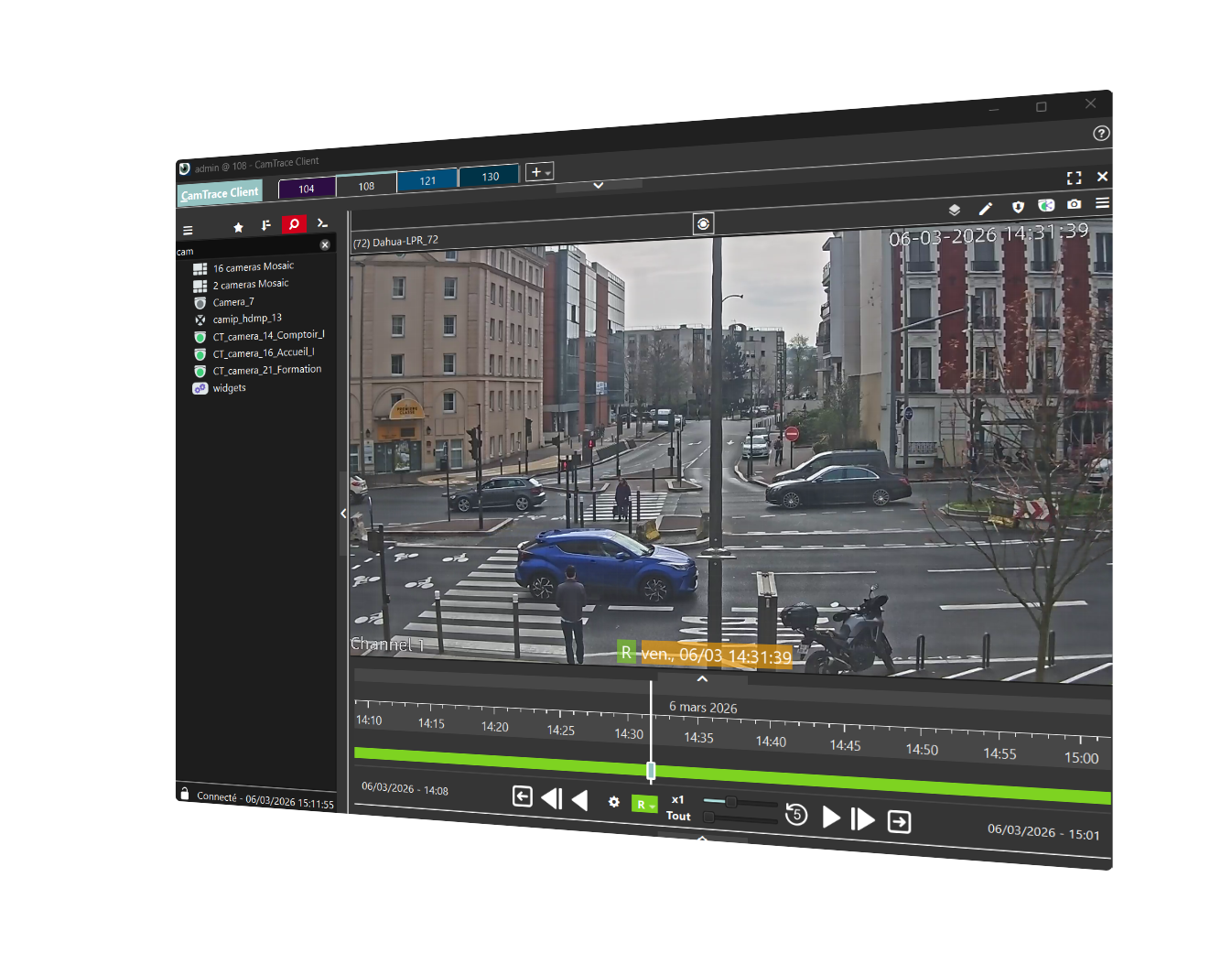 Navigating from camera to camera becomes crystal clear, because you no longer need to know the name of a nearby camera to view it : simply click on its icon directly in the video stream. Operators gain in speed and efficiency.